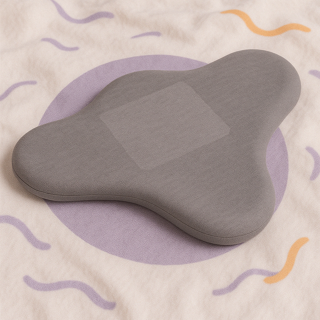 The gray orthopedic cushion, featuring an ergonomic butterfly-like design, is crafted to provide targeted comfort and support.
