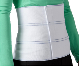 Elastic post-surgical abdominal binder with adjustable closure. Provides controlled compression and comfortable support.