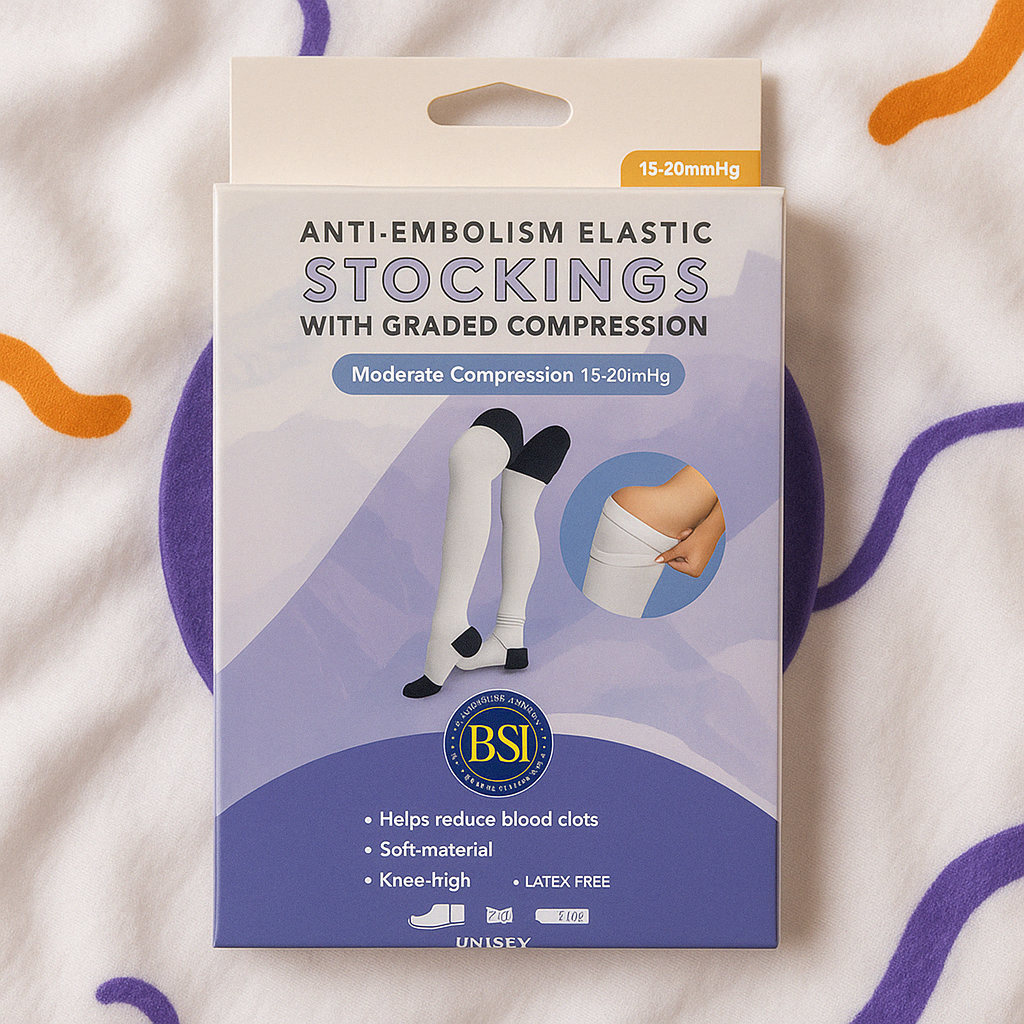 Anti-embolism elastic stockings with 15–20 mmHg graded compression. Help improve circulation and prevent thrombosis after surgery.